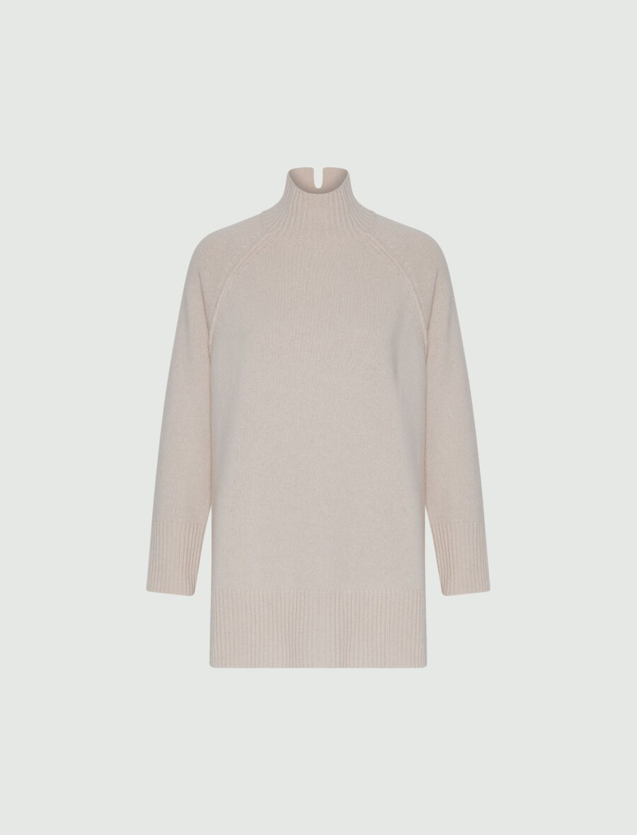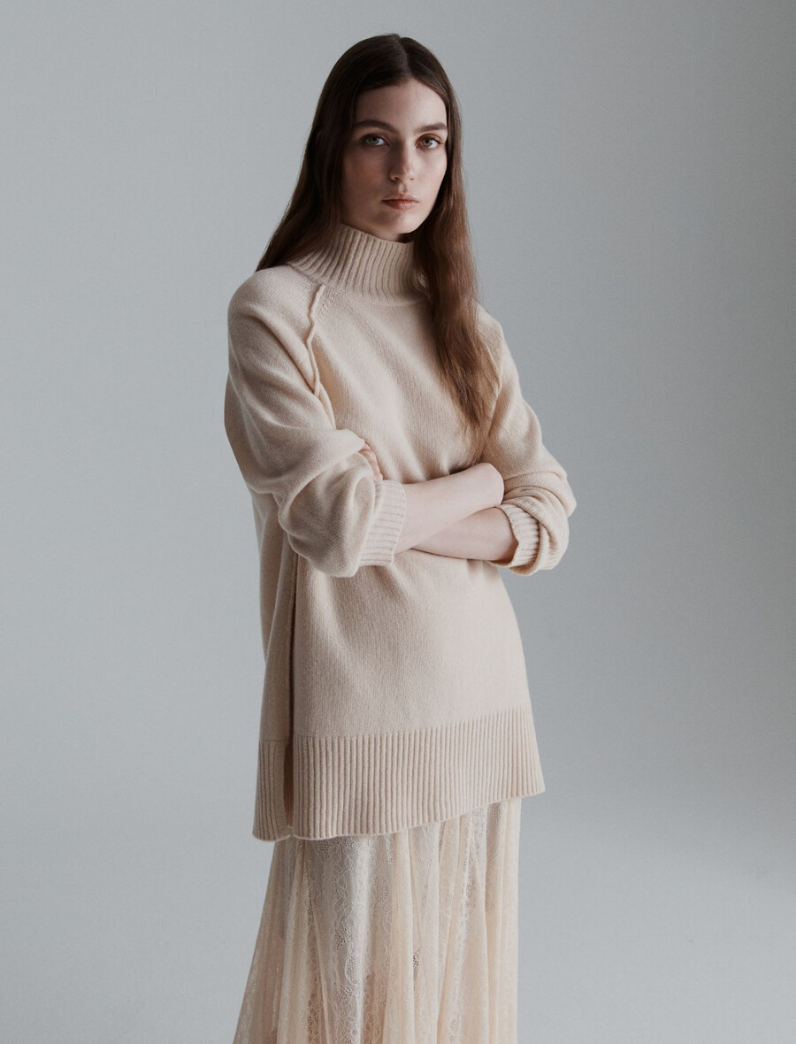 Un véritable indispensable de votre garde-robe, à porter sans cesse : ce pull à col roulé en laine cardée arbore une coupe classique et une fente latérale tendance. Portez-le avec une jupe fluide mi-mollet pour un look citadin ultra-féminin.