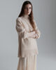 - Col et finitions en maille côtelée.