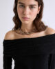 L’élégance hivernale par excellence caresse la peau : enfilez ce pull duveteux orné de micro-paillettes scintillantes. Son col châle dévoile les épaules pour une sensualité enveloppante.