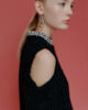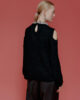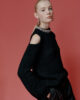 Ce pull à épaules dénudées, confectionné en laine d’alpaga douce et enveloppante, est conçu pour une allure sophistiquée lors des fêtes hivernales. Il est orné de petites applications de bijoux au niveau du col.