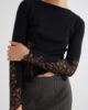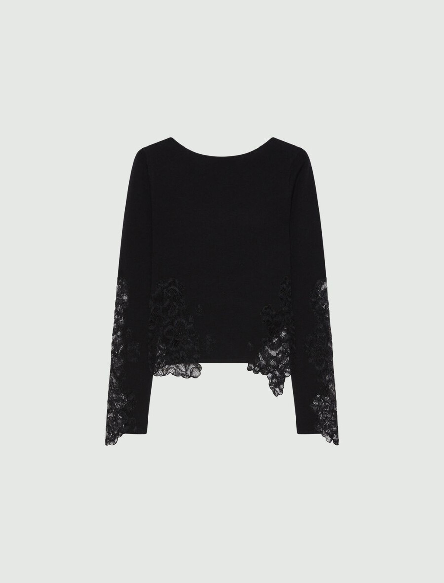 Ce pull polyvalent en laine stretch se réinvente avec une coupe ajustée et de délicates finitions en dentelle aux poignets et à l’ourlet. À porter avec la mini-jupe pour un look citadin et pétillant.
