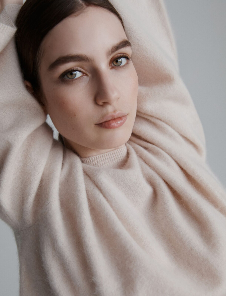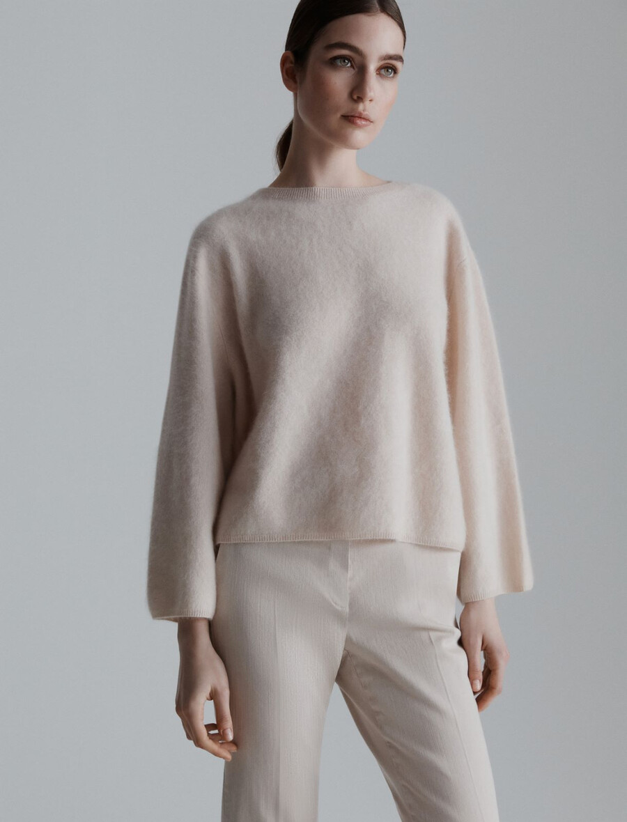 - Pull en laine et cachemire effet fourrure.