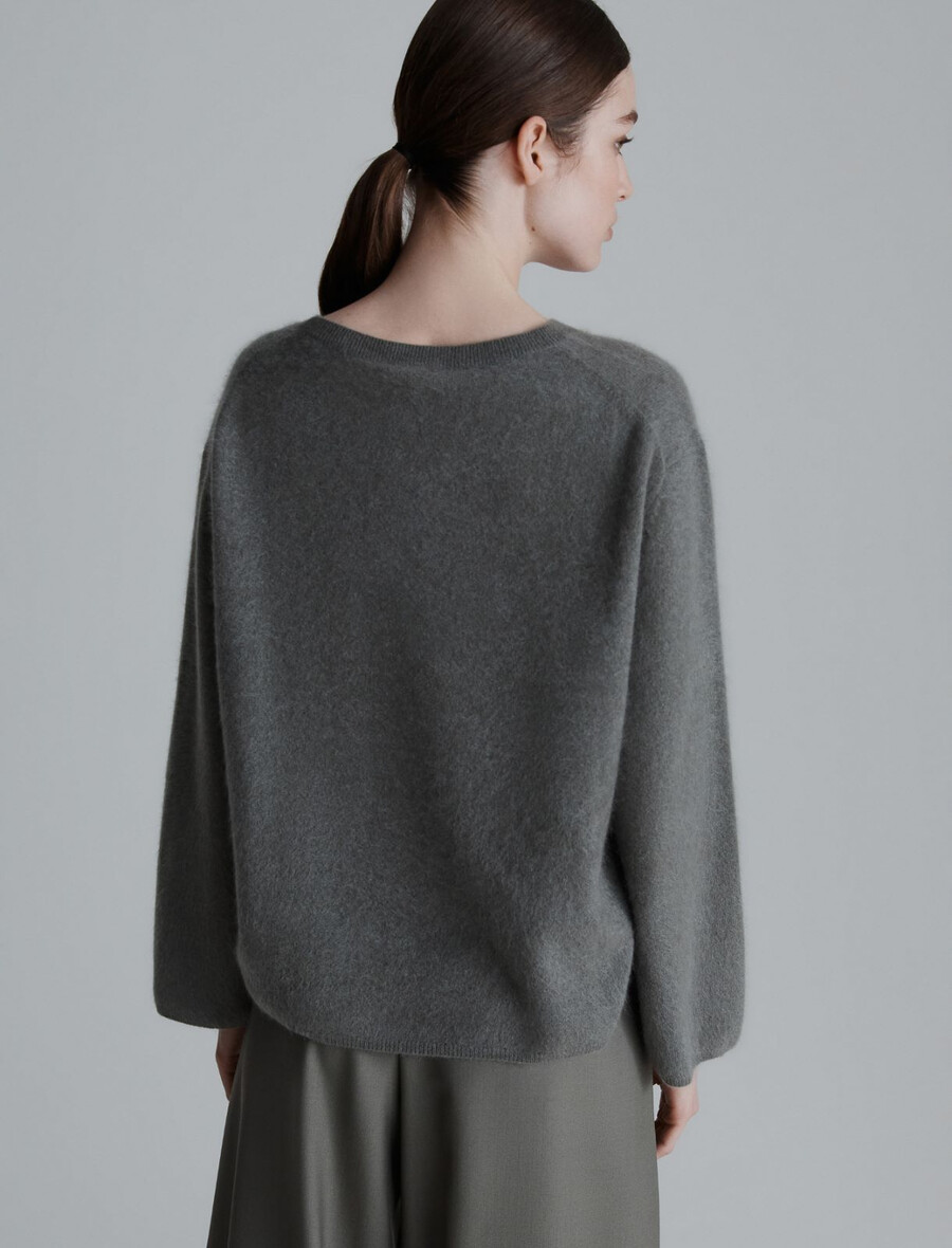 Ce pull doux et chaud en laine et cachemire arbore une coupe ample qui accentue l’allure cocon du mannequin. Pièce essentielle, il se marie aussi bien avec un pantalon large qu’avec votre jean préféré.