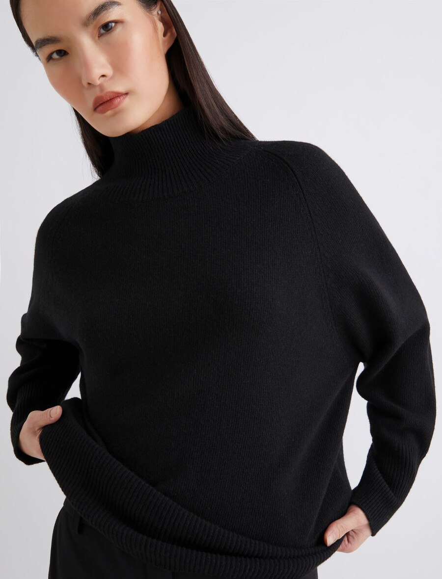 Un allié fidèle pour la saison froide : ce pull à col montant est confectionné en laine mélangée cachemire pour une douceur et une chaleur incomparables. À porter avec une mini-jupe plissée et un manteau pour un look citadin sophistiqué.