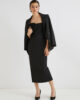 Une élégance urbaine revisitée : coupes structurées, gabardine stretch sophistiquée et encolure ornée d’une rose en tissu. Portez cette pièce sous le manteau à la coupe cocon pour affronter avec style les soirées les plus chics.
