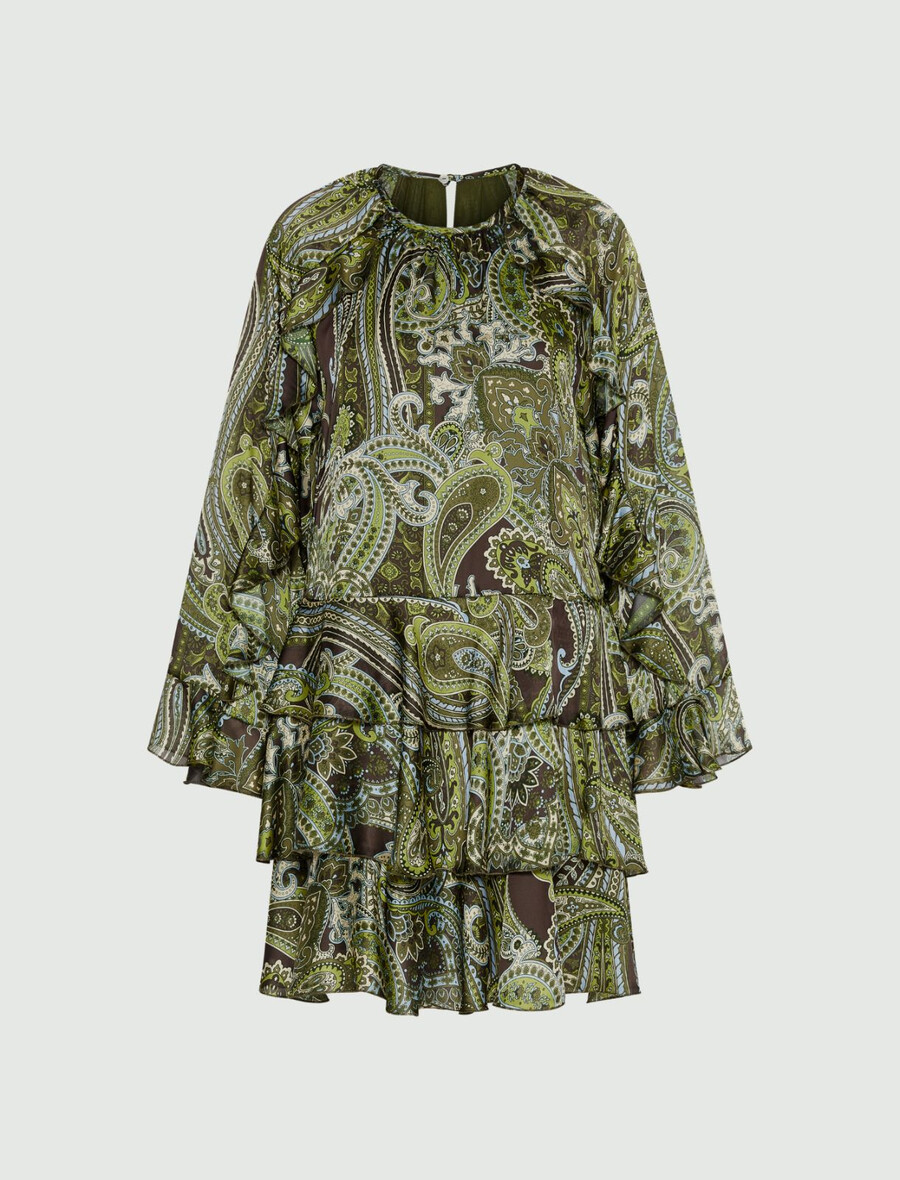 Parfaite avec des bottes et des bijoux fantaisie étincelants : cette robe courte à la coupe décontractée est ornée de volants romantiques sur la jupe. Le motif cachemire apporte une touche de couleur.