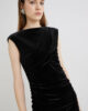 Cette mini-robe moulante sans manches en velours stretch transformera votre journée de bureau en un événement mode. Le modèle présente un décolleté croisé et des fronces qui dynamisent la silhouette.