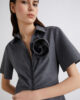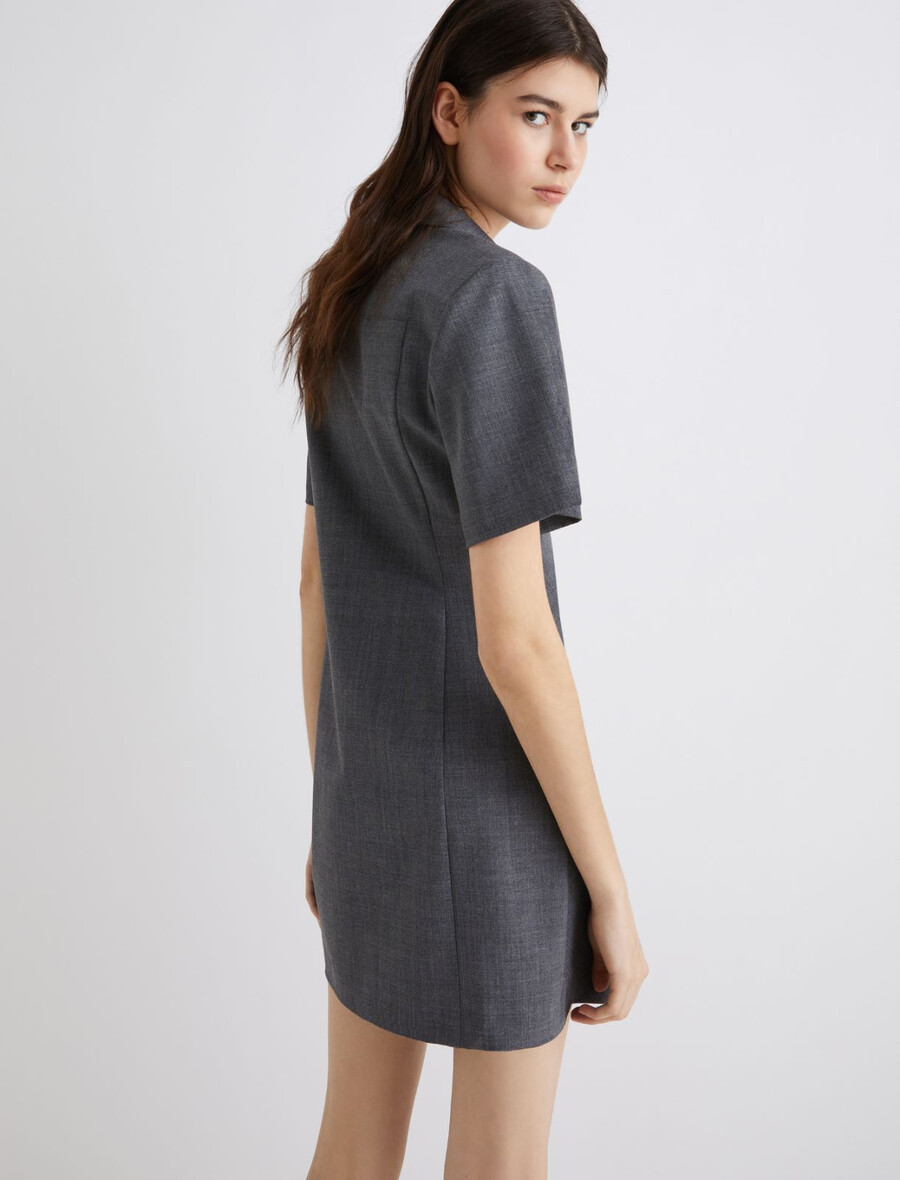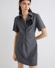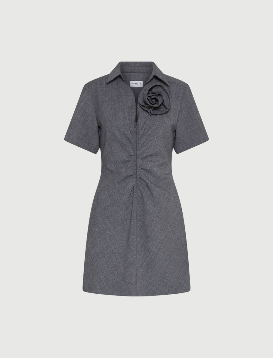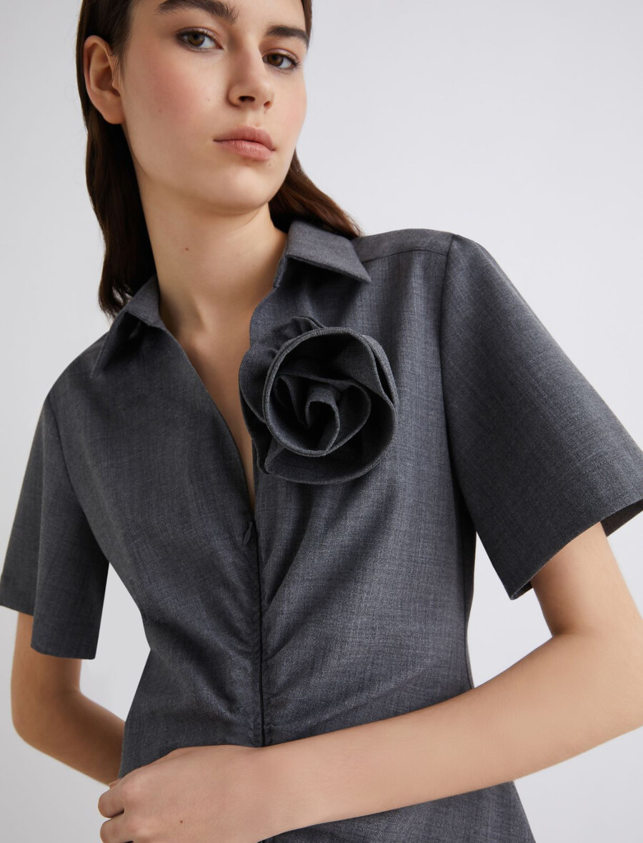Robe courte ornée d’une broche fleurie – Gris chiné