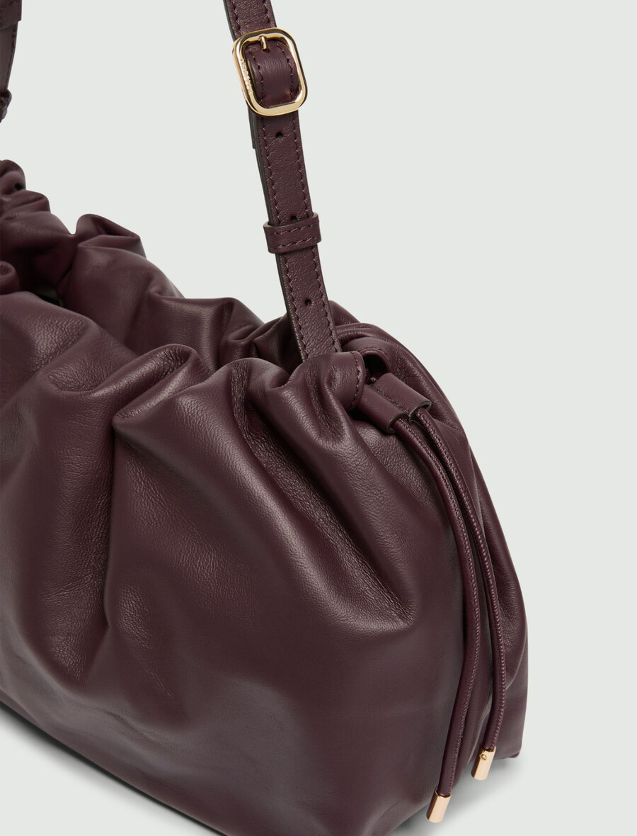 • Détail froncé autour de la fermeture magnétique et logo gravé.