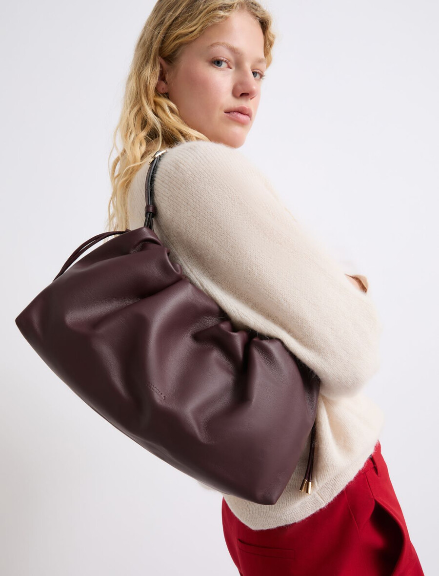 Ce sac à main déstructuré se distingue par son cuir Nappa souple et son tannage sans métal. Associez-le aux doudounes de la collection ou à des manteaux plus décontractés.