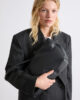 - Détail froncé autour de la fermeture magnétique et logo gravé.