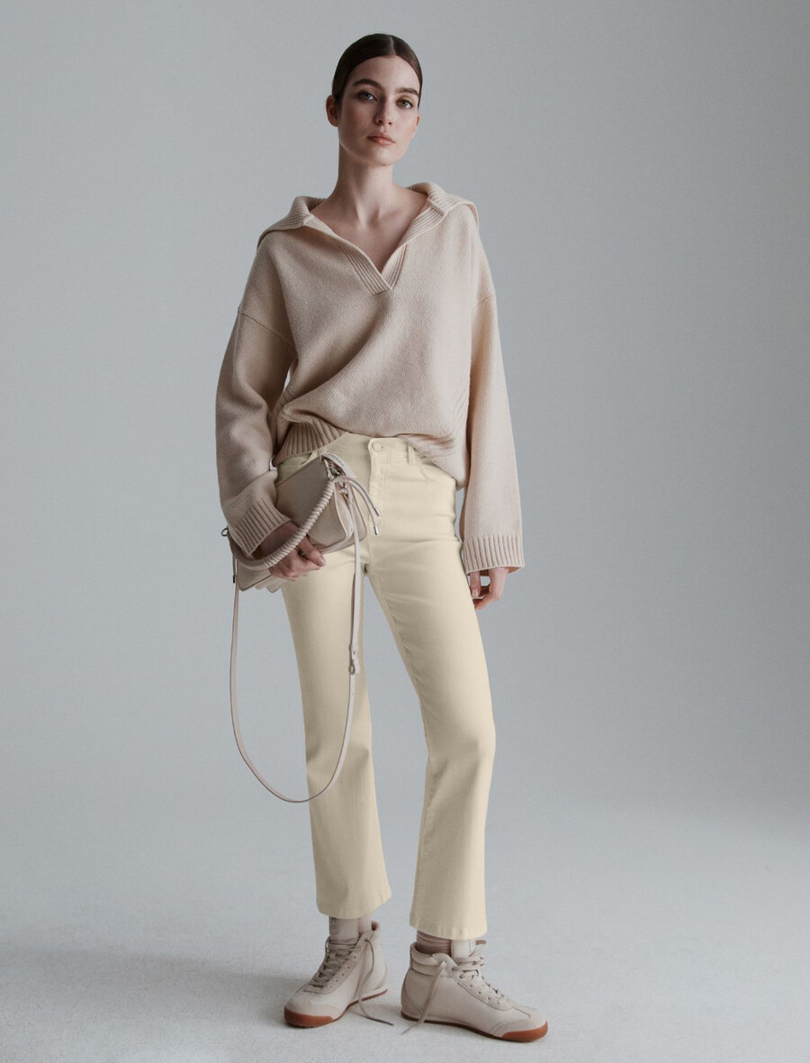 Ce sac à main n’a jamais été aussi tendance : il arbore des lignes géométriques, des empiècements en tissu matelassé et un intérieur parfaitement organisé. Portez-le avec les ensembles coordonnés ton sur ton de la collection.