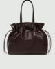 Ce grand cabas spacieux est idéal pour la vie citadine. Sa fermeture à cordon coulissant apporte une touche de fronces subtiles qui mettent en valeur la richesse du cuir nappa.