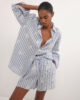 - Short en popeline de viscose et lyocell à rayures avec détails brodés