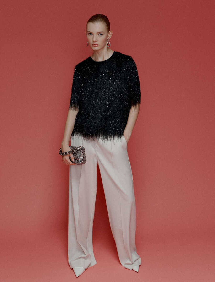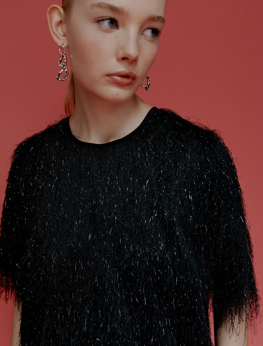 Une version festive du t-shirt essentiel : ce nouveau modèle en jersey technique doux arbore un motif à franges original qui ondule légèrement au gré de vos mouvements.