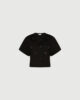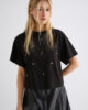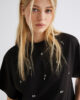 Ce nouveau t-shirt arbore une coupe courte et des applications de cristaux sur le devant, apportant une touche glamour à la pièce la plus décontractée de la mode. À porter avec une jupe évasée, votre jean préféré ou un blazer.