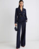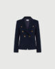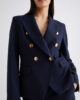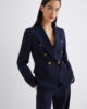 Blazer féminin au caractère affirmé, à double boutonnage et boutons métalliques griffés. À porter avec un pantalon palazzo et des talons vertigineux pour une silhouette élancée.