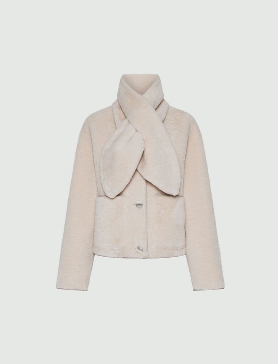 Cette veste douce et enveloppante possède une texture unique et une coupe souple pour vous offrir chaleur et style. L’écharpe assortie est amovible.
