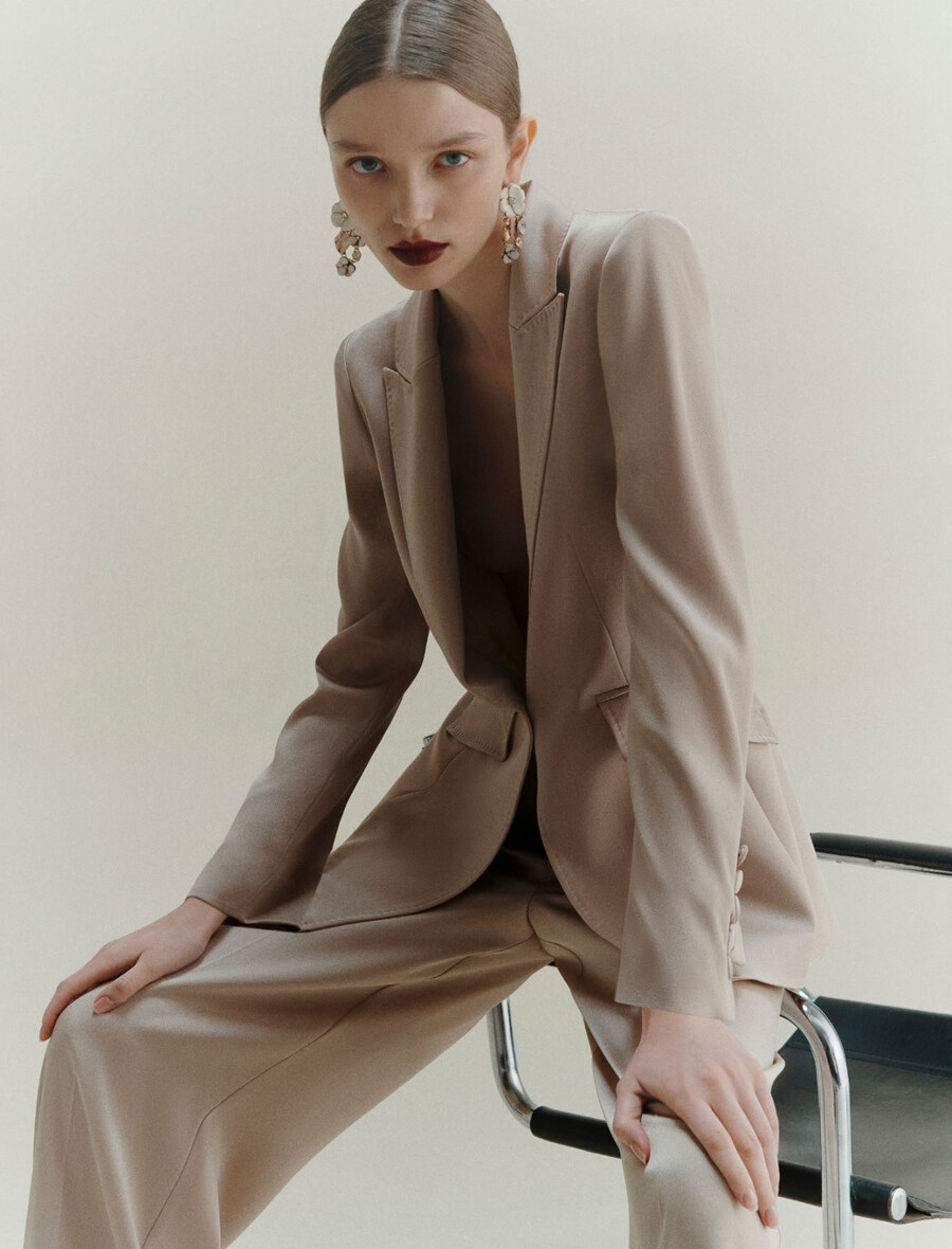 Ce blazer naturellement élégant est confectionné en satin brillant qui glisse sur la peau comme une douce étreinte. Portez-le avec le pantalon assorti pour une tenue sophistiquée ou associez-le à votre jean préféré pour un look citadin surprenant.