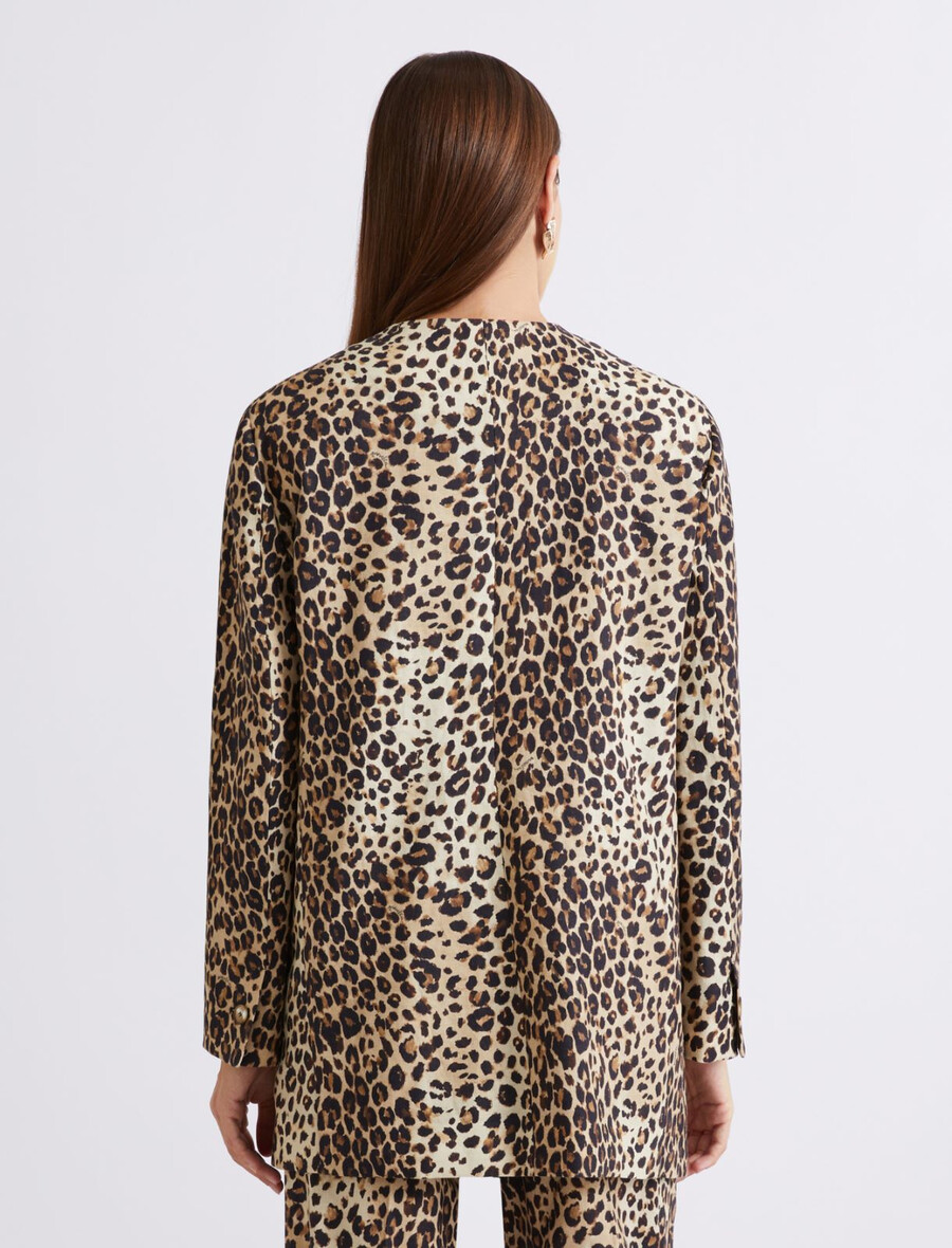 - Veste doublée en lin et coton stretch à motif vannerie